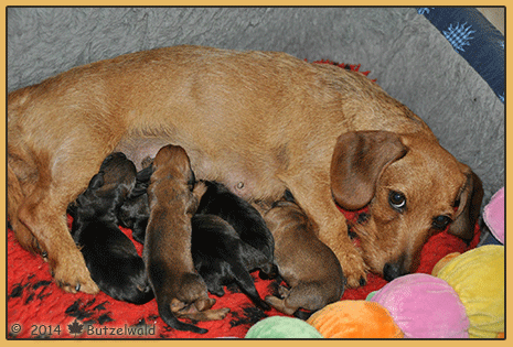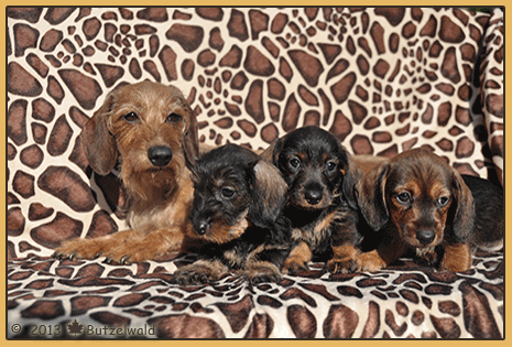 Hier möchte ich Ihnen meine bisherigen Würfe aus meiner Zucht vorstellen. Ich züchte seit 2004 rauhhaarige Zwergteckel. Der aktuelleste Wurf ist oben und dann geht es in chronologischer Reihenfolge zu den früheren Würfen. Wenn Sie auf den jeweiligen Balken klicken, gelangen Sie zur geweiligen Welpenstube des Wurfes. Ich bitte aber noch um etwas Geduld, denn es sind noch nicht alle Welpenstuben verlinkt.